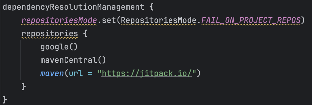 Shown above is the settings.gradle.kts version, if using settings.gradle then use the alternative syntax: