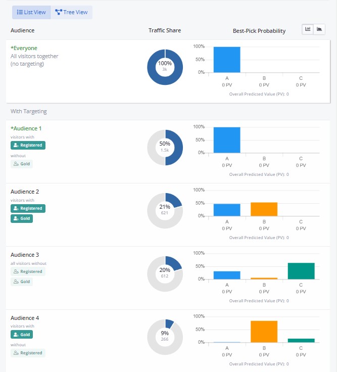 Conductrics’ Audience report is where AB Testing merges with predictive targeting in order to discover which experiences are best for each type of customer.
