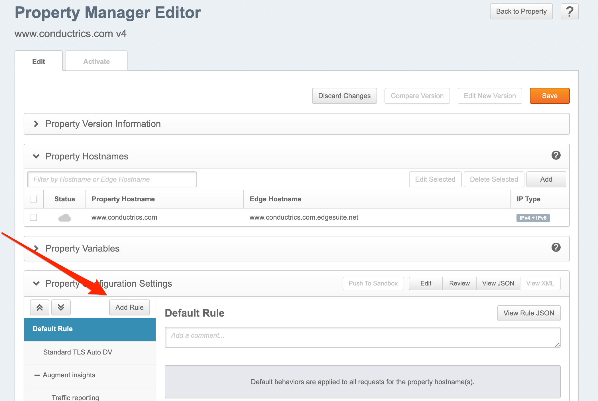 - You should now be at the Property Manager Editor page for your Akamai Property Version.