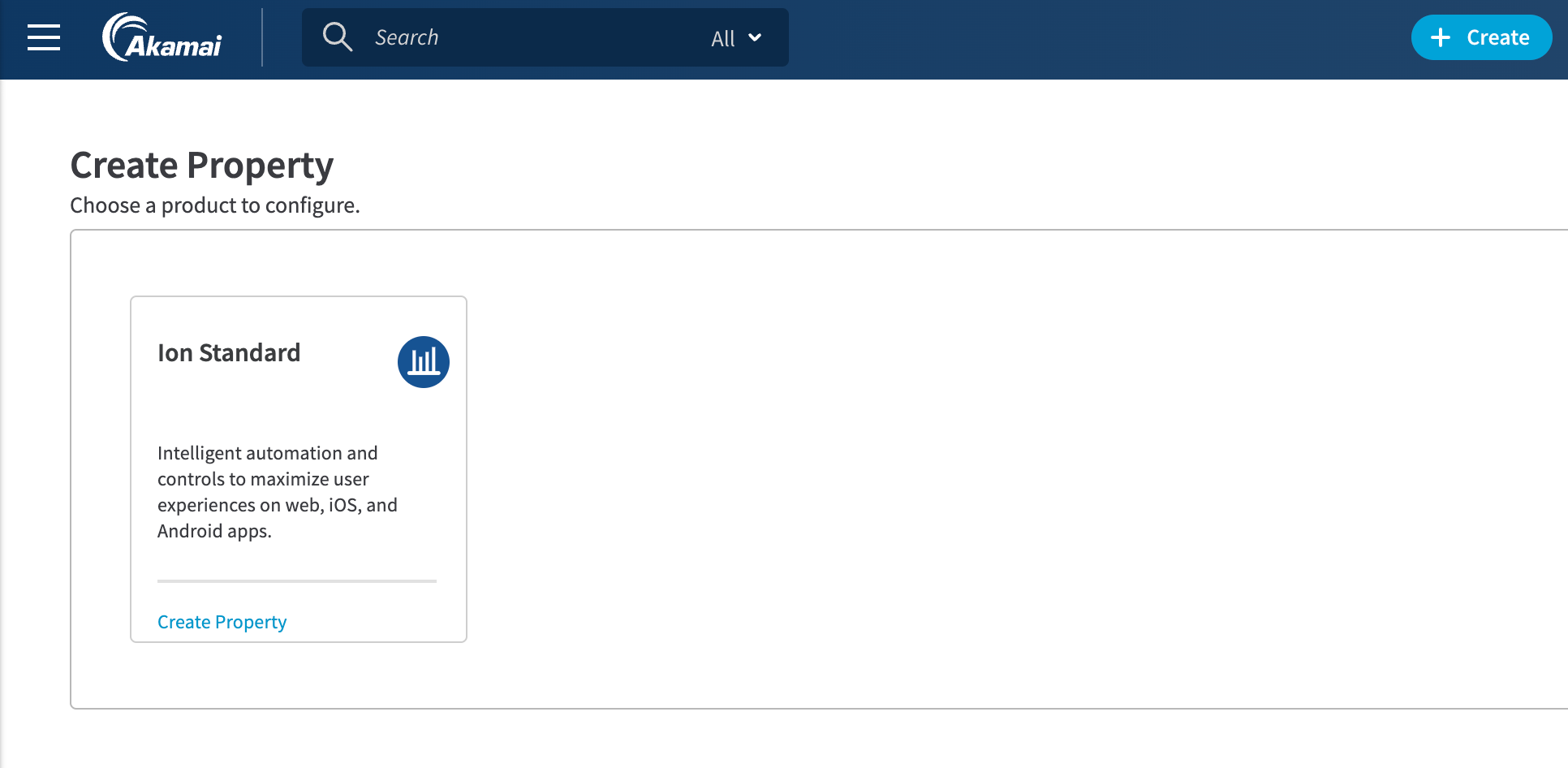 - Click Create Property under Ion Standard (or whatever Ion tier you have access to), as shown below: