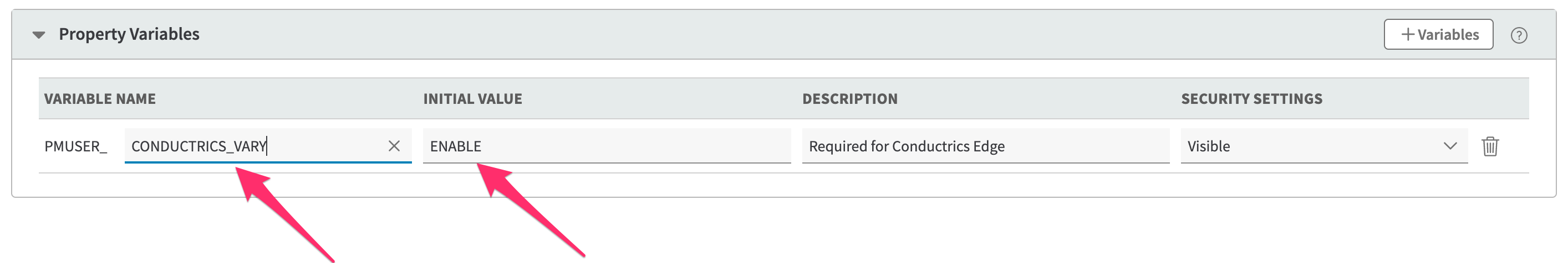 Create the PMUSER_CONDUCTRICS_VARY Property Variable
