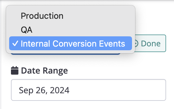 You can then choose the Data Source (such as Internal Conversion Events) from the dropdown that appears.