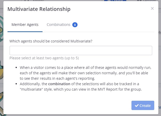Clicking on the MVT Relationship button will open up a modal to set up the MVT Agent. You can now select the tests that you would like to merge as the MVT: