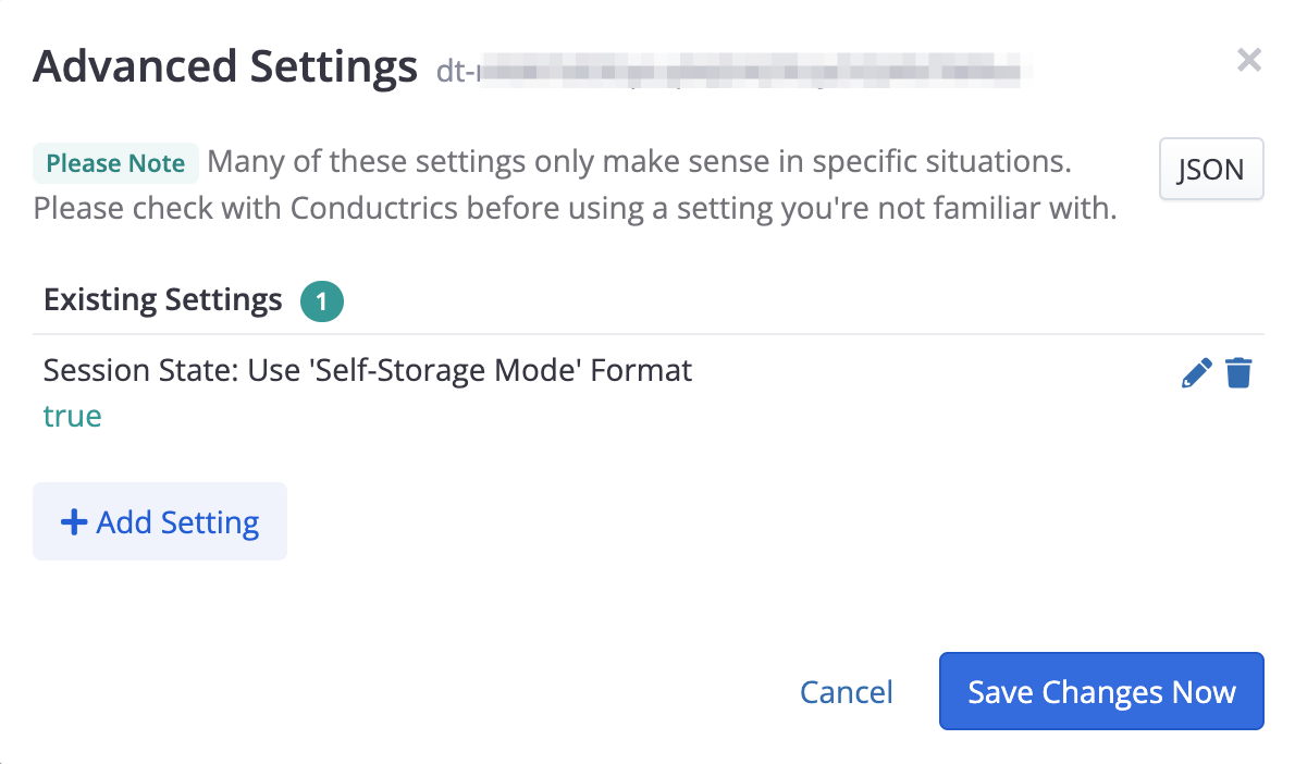 It's possible that you'll see some other "Advanced Settings" in there already. Leave those as-is. Contact Conductrics if you have any questions about Advanced Settings.